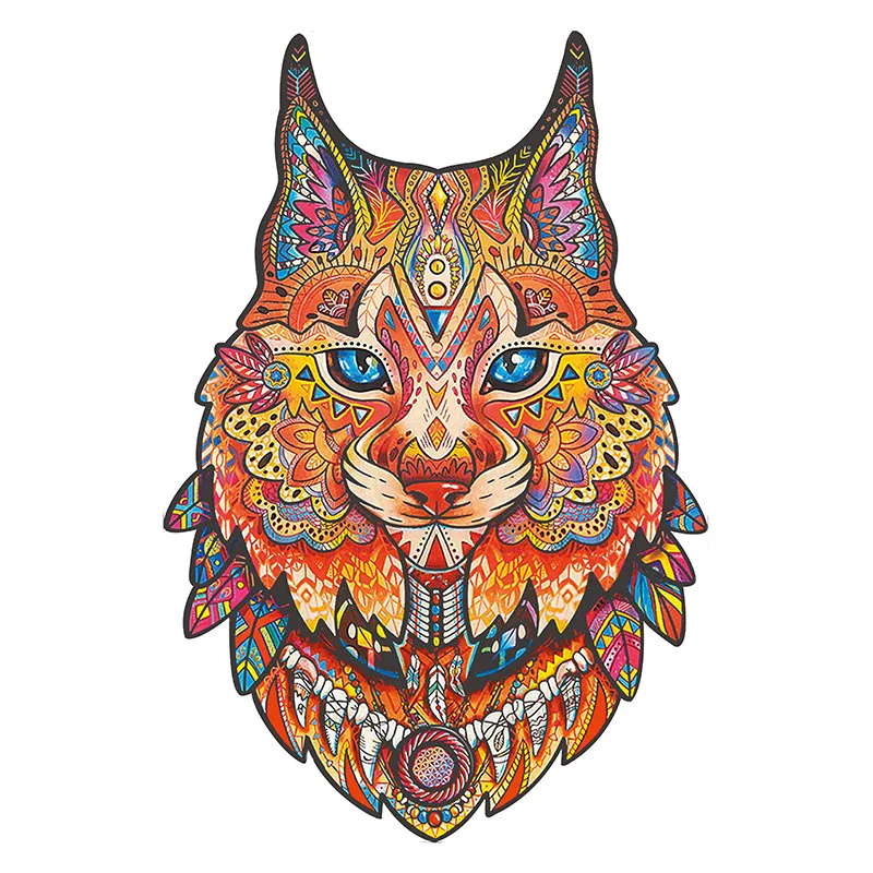 1. Nature-themed puzzle game-enjoy relaxing time with this mysterious wolf head, puzzle! There are multiple sizes, our wooden jigsaw puzzle is made of small pieces shaped like savanna animals and plants.